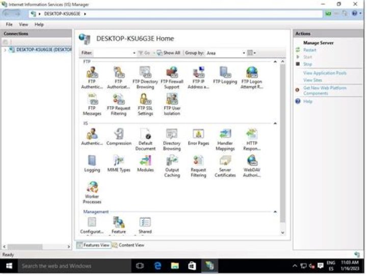 - Click the triangle beside your machine name in the Connections panel on the left of the IIS Manager dialog.