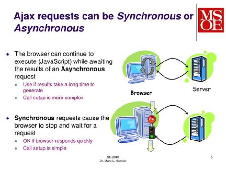 AJAX can access the server both synchronously and asynchronously: Synchronously, in which the script stops and waits for the server to send back a reply before continuing. Asynchronously, in which the script allows the page to continue to be processed and handles the reply if and when it arrives.