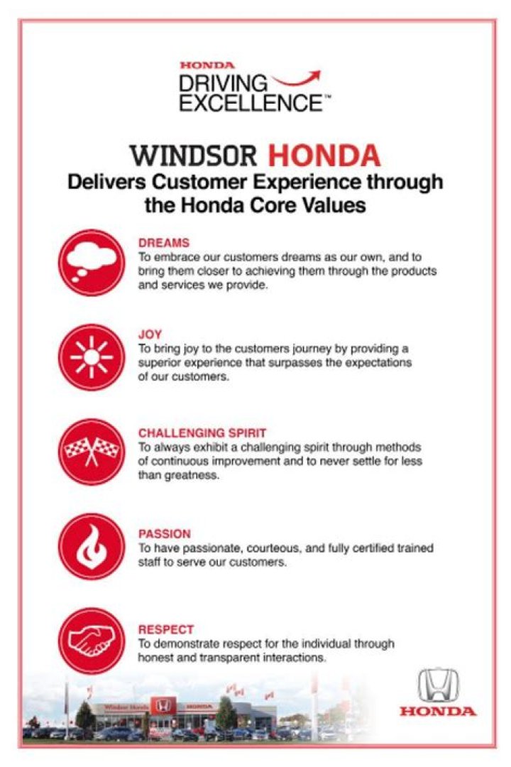 What are the 5 Honda core values?