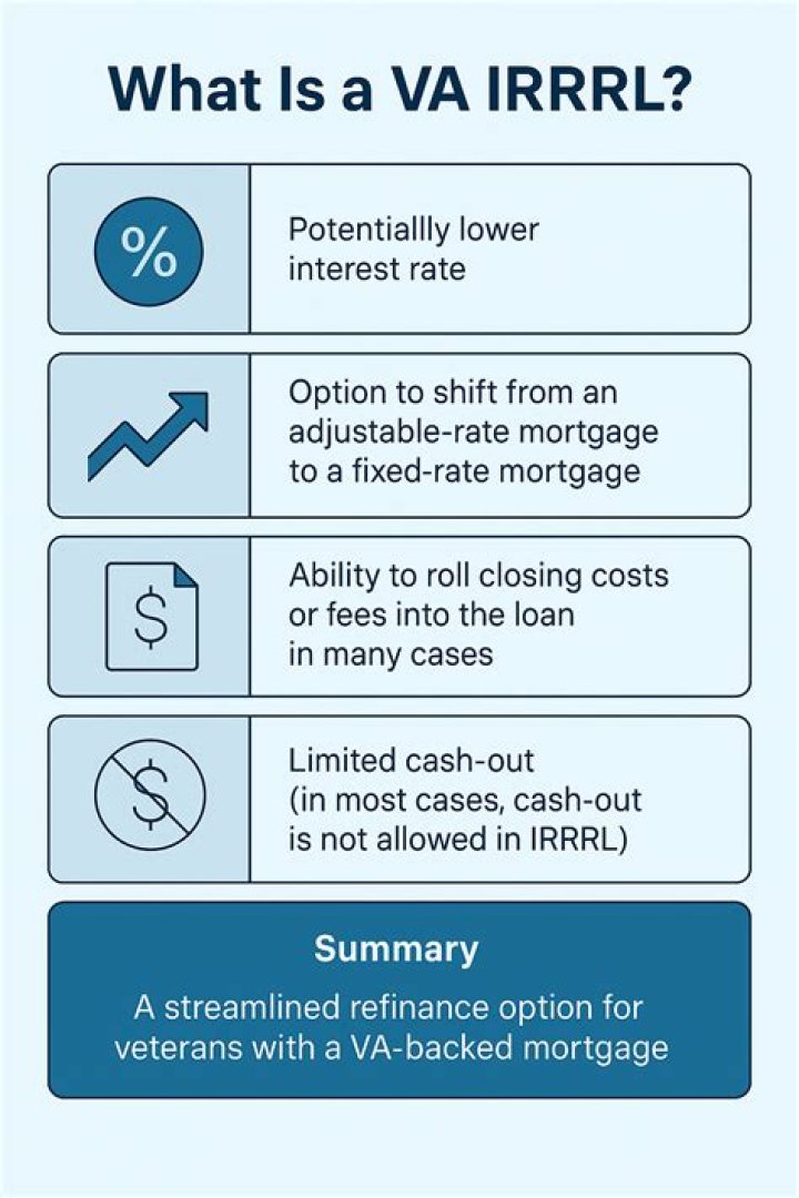 VA IRRRL requirements For a VA IRRRL, you only need to certify that you previously occupied the home (so the house can be an investment property, a rental property, or a second home). The interest rate on the new loan must be lower than the rate on the old loan unless you’re refinancing an ARM to a fixed rate mortgage.